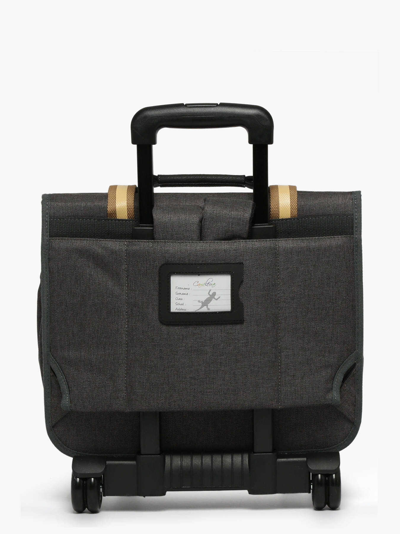 38 cm - 21 litres - 2.38 kg ~ Cartable à roulettes enfant 38 cm de la ligne Vintage Urban signé Caméléon. Idéal pour le CP, CE1 et CE2. Composé de 2 compartiments séparés par une poche centrale zippée, ce cartable enfant est pensé pour ranger toutes les affaires scolaires. Il peut contenir du format cahiers A4. Pratique, l'intérieur se compose d'un emplacement spécial règle. A l'extérieur il y a un emplacement pour la gourde. Les poches extérieures zippées sont idéales pour ranger les petits effets comme l'agenda ou le goûter. Pour faire rouler le cartable, les bretelles doivent être rangées dans la poche au dos. A la fois renforcé et rembourré, ce cartable assure confort et résistance. Côté sécurité, il dispose de bandes réfléchissantes sur le devant et sur les bretelles du cartable. Fabriqué en polyester recyclé imperméable. Petit plus, la règle est offerte !