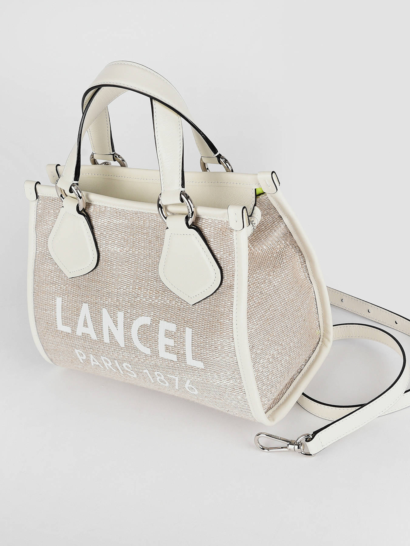 Jeune, audacieux et moderne, La Maison Lancel revisite le cabas d’été dans une version cool-chic et tendance en toile de jute naturelle, contrastée par des finitions en cuir lisse. Avec son maxi logo imprimé lumineux et hypnotique, ce cabas accompagnera avec allure décontractée nos clientes dans leurs évasions estivales. Il dispose d’une anse de 11,5 cm ainsi qu’une bandoulière de 90 cm réglable et amovible pour le porter selon vos envies. Sa fermeture zippée garder en sécurité tous vos essentiels tels que téléphone, portefeuille et clés.