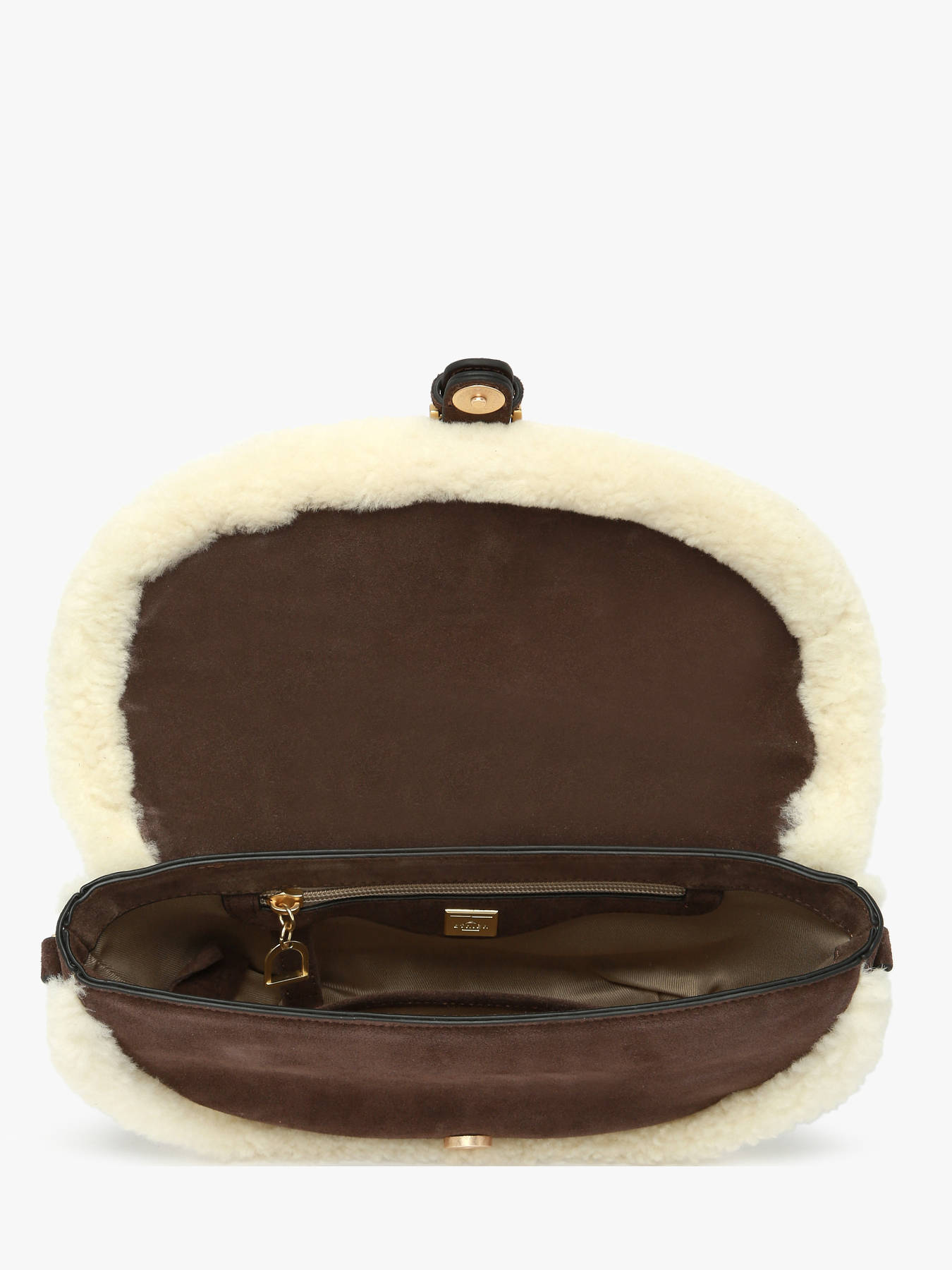 Le sac bandoulière ETRIER de la ligne ALPIN est confectionné en cuir velours garni de mouton, avec un dos en cuir lisse offrant une meilleure tenue dans le temps. Pour un porté haut confortable, la bandoulière réglable et amovible complète ce modèle à la fois élégant et pratique. Il se ferme à l’aide d’un rabat qui se ferme par pression aimantée. À l’intérieur, une poche simple et une poche zippée permettent une organisation optimale. Fidèle à l’univers ALPIN, il est agrémenté d’un porte-clés-bijou décoratif reprenant les symboles de la marque : moufle, étrier et les lettres ETRIER.