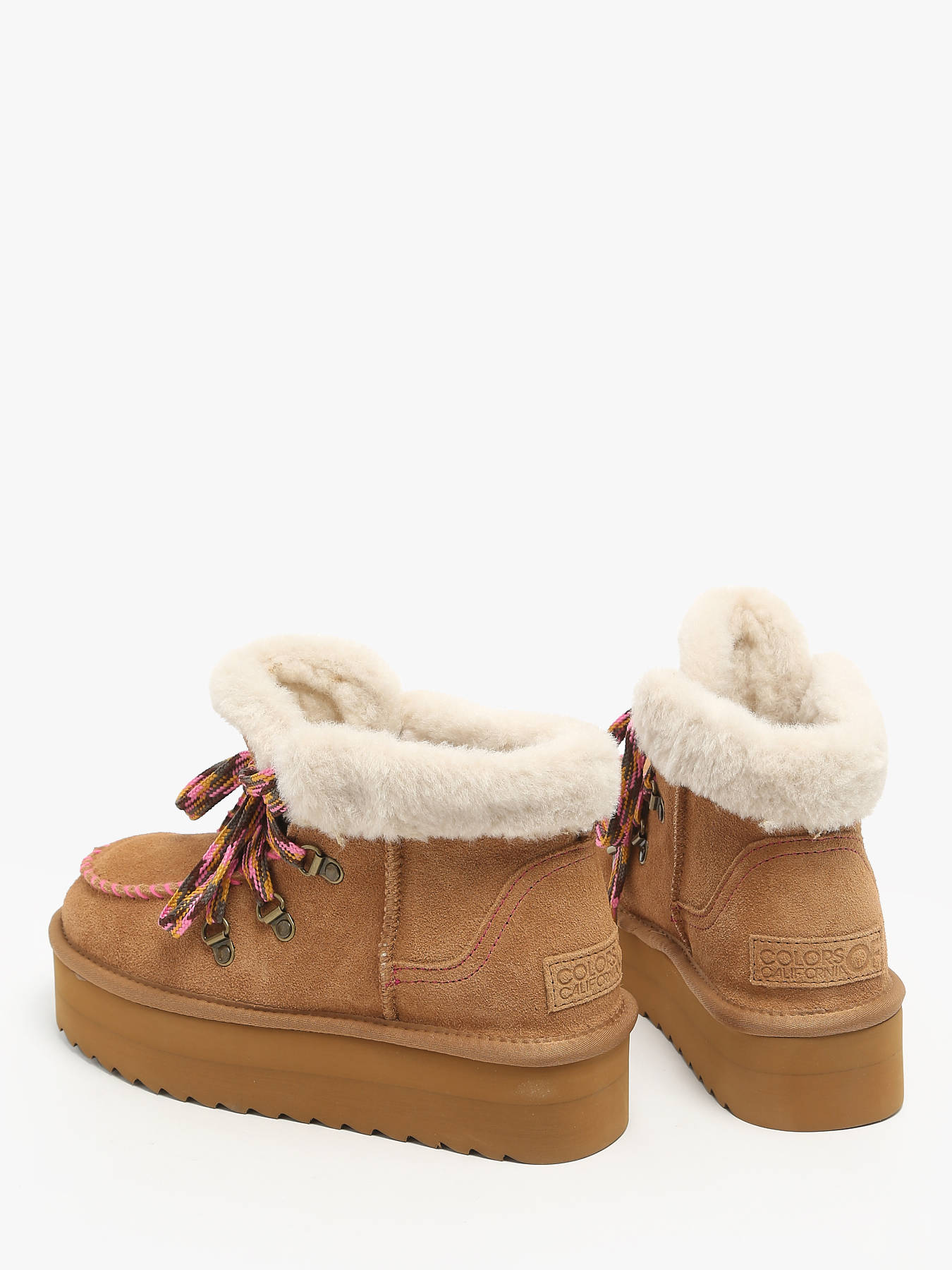Les bottines COLORS OF CALIFORNIA sont parfaites pour les amatrices de montagne qui souhaitent garder une touche alpine en ville. Confectionnées en daim, ces bottines à plateforme allient style et confort, tout en évoquant l'esprit aventurier des randonnées. La bordure en fourrure apporte une touche de chaleur, tandis que les lacets colorés et les surpiqûres contrastées sur le dessus ajoutent un charme unique. Avec leur esthétique inspirée des chaussures de randonnée, elles séduiront les femmes sportives à la recherche d'un look à la fois tendance et fonctionnel. La semelle en EVA offre légèreté et adhérence, idéale pour une utilisation quotidienne. Que vous exploriez la ville ou que vous profitiez d'une journée en plein air, ces bottines vous accompagneront avec style.