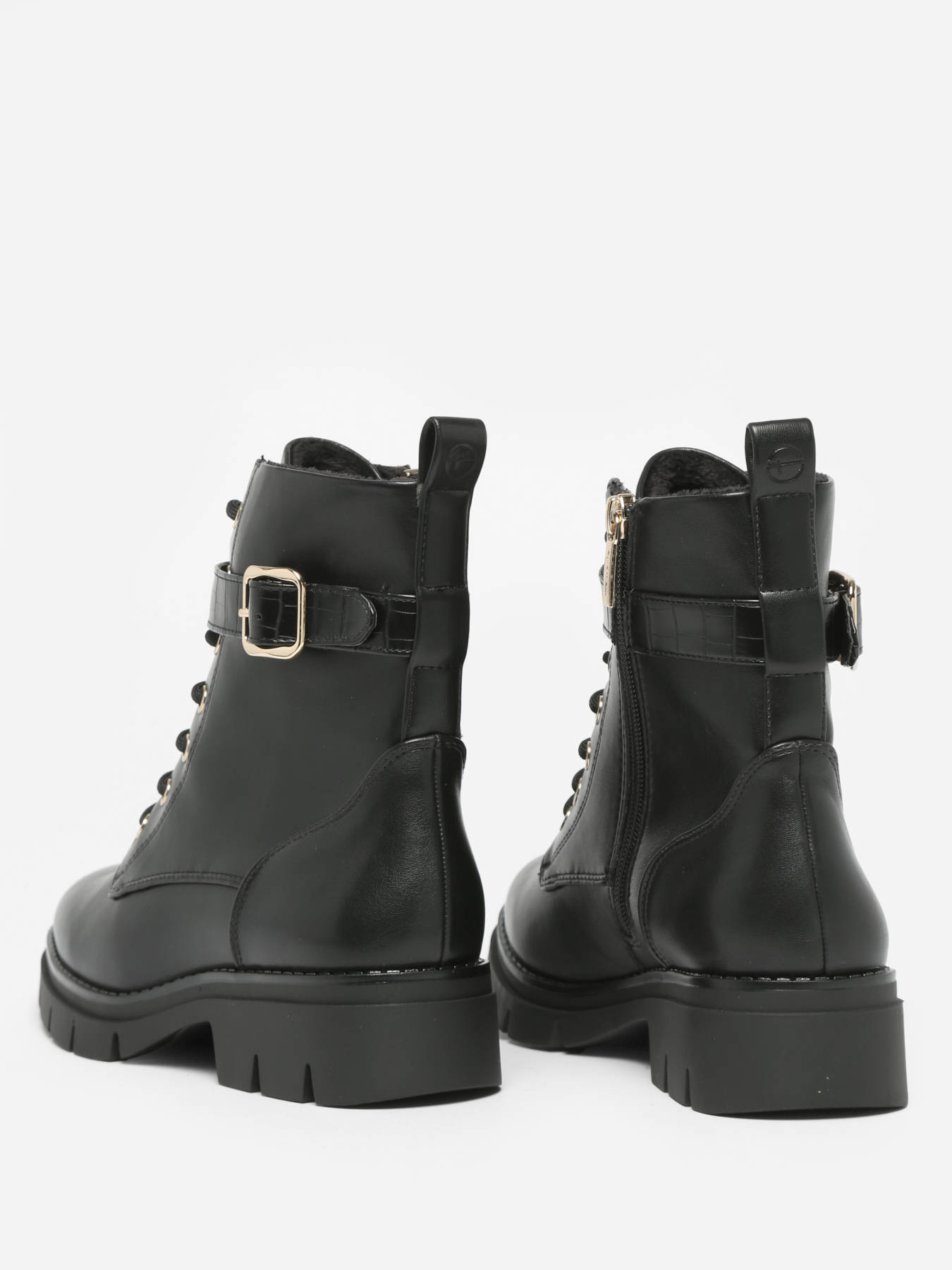 Optez pour l'élégance et le confort des bottines TAMARIS en matière synthétique et cuir. Conçues avec une coupe normale, ces bottines s'ajusteront parfaitement à votre pointure habituelle. La tige combine des matériaux synthétiques et du cuir pour un look à la fois moderne et sophistiqué. La doublure en textile et synthétique offre un confort agréable tout au long de la journée. La semelle intérieure en textile ajoute un confort supplémentaire à chaque pas. La semelle extérieure en caoutchouc assure une adhérence solide et une stabilité fiable. Avec leur fermeture zippée et leurs lacets, ces bottines offrent un ajustement sécurisé et un style tendance, parfaites pour une tenue fashion.