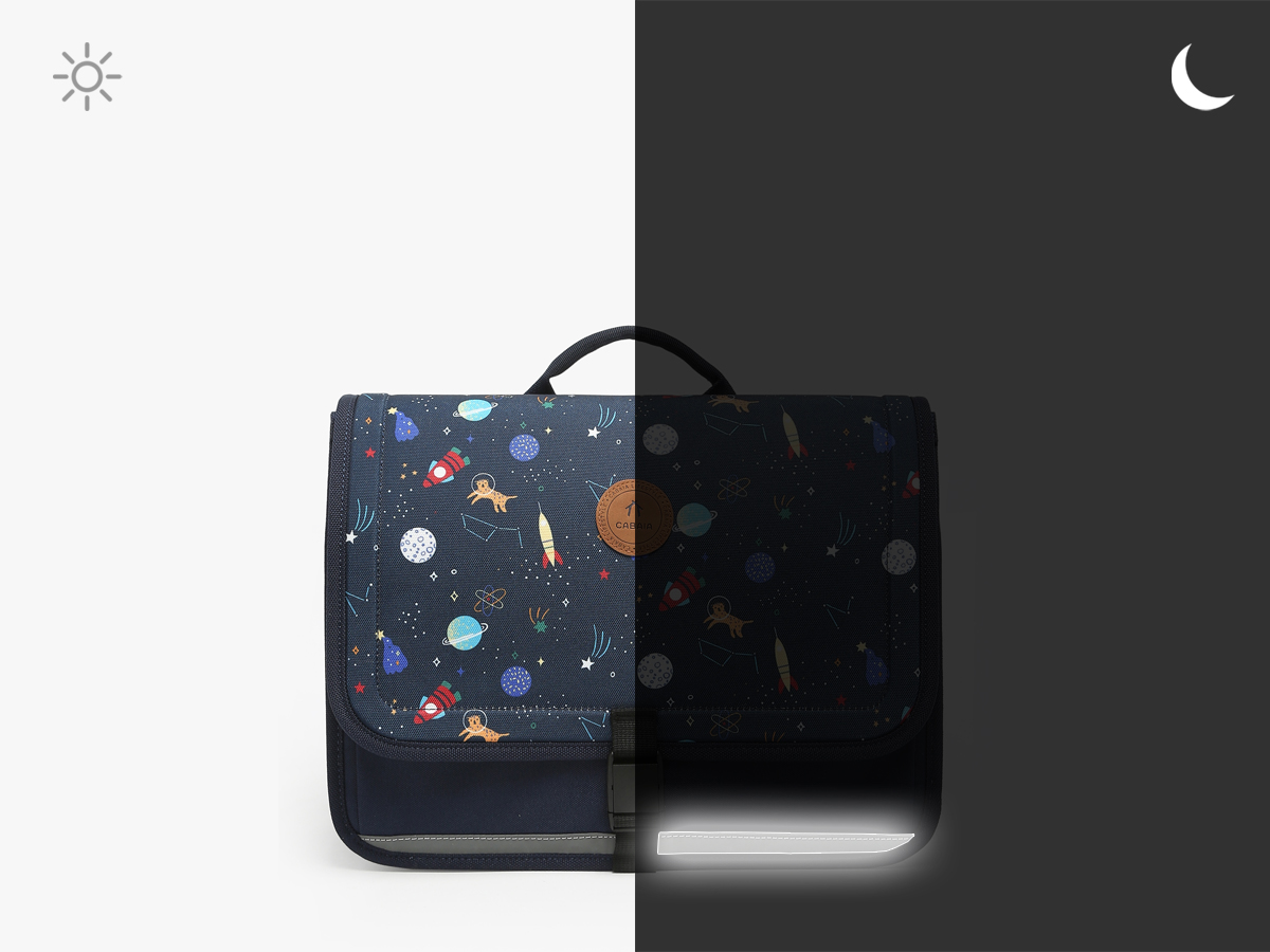 Le cartable CABAIA, conçu pour les enfants de 3 à 5 ans, est fabriqué en polyester recyclé, alliant durabilité et respect de l'environnement. À l'extérieur, il comprend deux poches avant, une poche latérale, et se ferme grâce à un rabat et un fermoir sécurisant. Les bretelles réglables offrent un port confortable au dos ou à la main. À l'intérieur, le cartable dispose de deux compartiments et de deux poches simples pour une organisation optimale. Un rabat amovible permet de personnaliser le cartable selon les goûts de chaque enfant, ajoutant une touche unique à cet accessoire pratique et écologique.