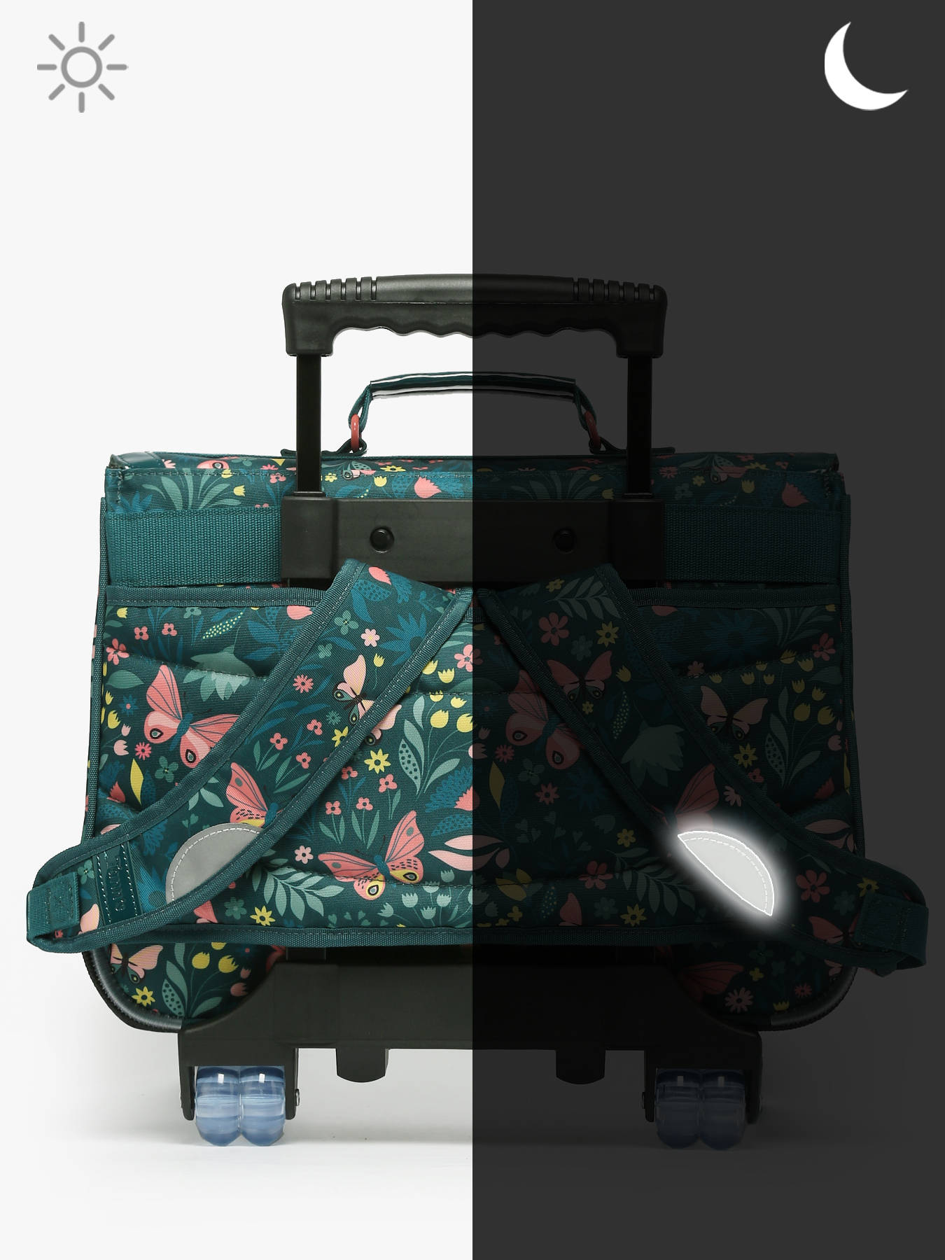 38 cm - 14 litres - 2.1 kg ~ Idéal pour le CP, CE1 et CE2, ce cartable à roulettes 2 compartiments de la marque TANN’S, fabriqué en polyester recyclé, allie confort et praticité. Grâce à ses deux compartiments spacieux, il est capable d’accueillir des dossiers A4, des cahiers jusqu’à 24x32 cm et des classeurs A4. À l’intérieur, une poche zippée sécurise les petits objets tandis qu’une poche avant facilite l’accès aux indispensables. Sa fermeture par rabat et fermoir garantit la protection des affaires. Léger et doté de bretelles réglables, ce cartable peut être porté sur le dos ou tiré grâce à ses roulettes, offrant ainsi une grande flexibilité. Durable et respectueux de l’environnement, il accompagne parfaitement les élèves dans leur organisation quotidienne.