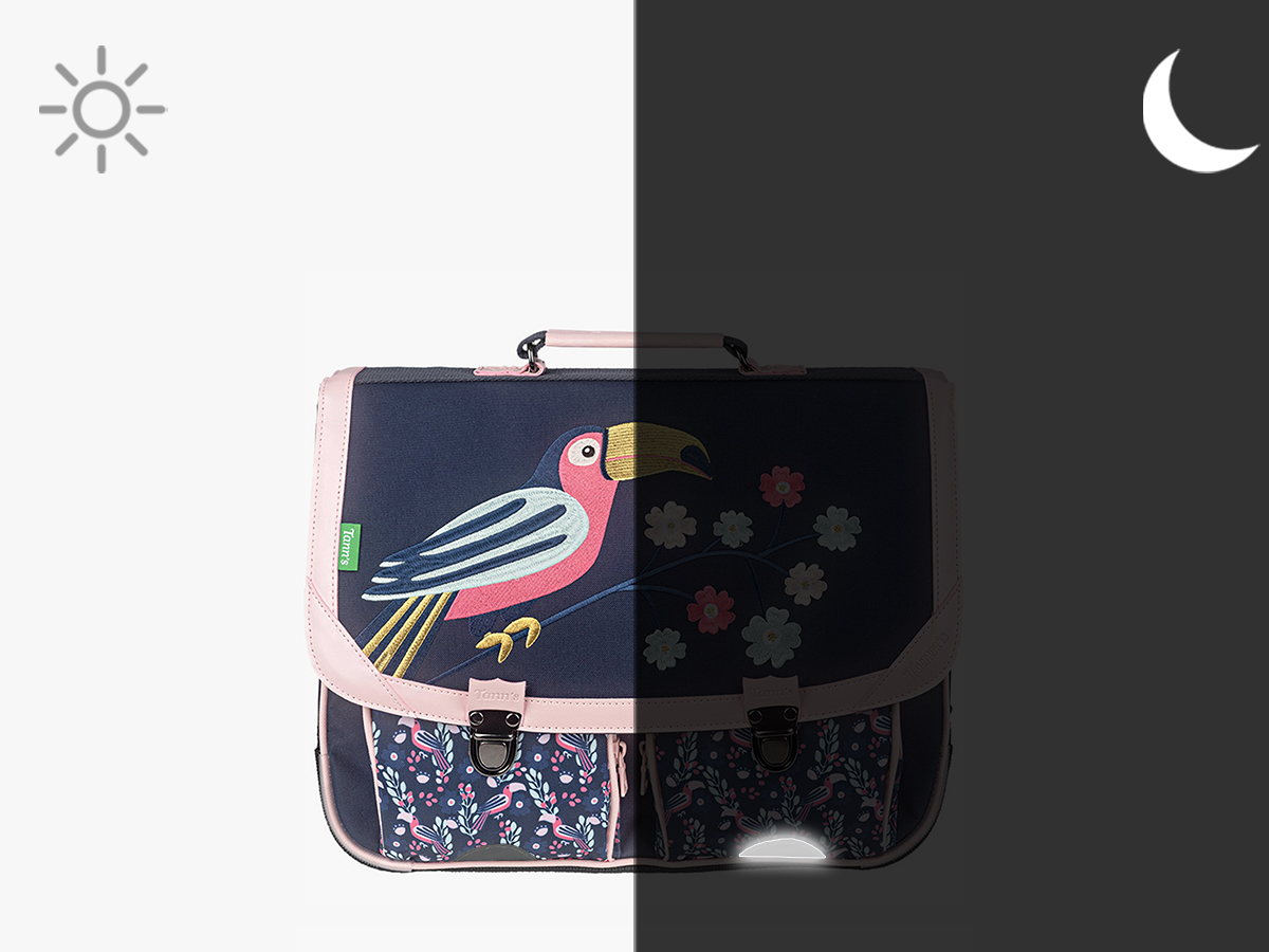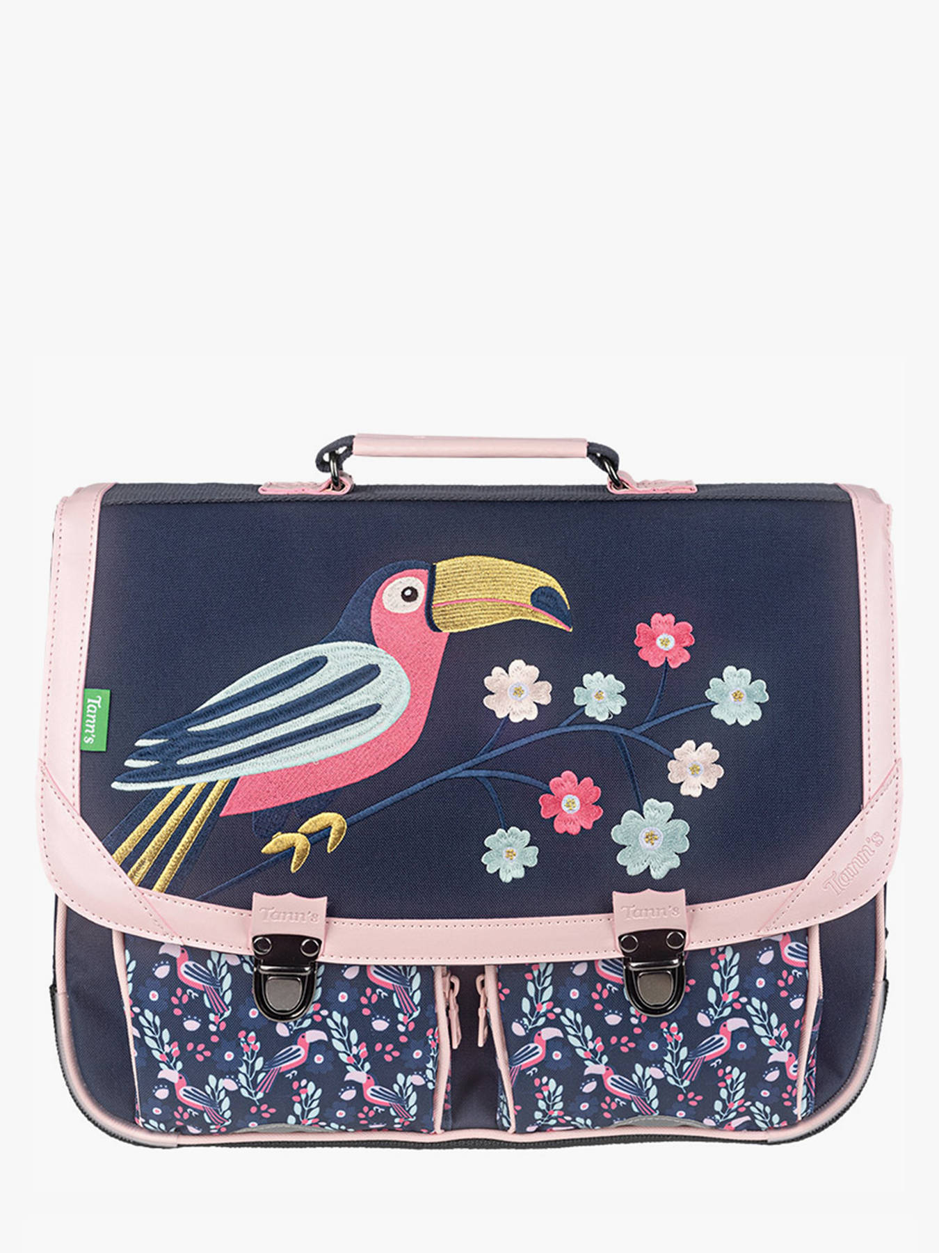 38 cm - 16.53 litres - 0.85 kg ~ Le cartable TANN'S en polyester recyclé est parfait pour les filles de 6 à 8 ans. Il comporte deux poches avant et se ferme par un rabat avec fermoir. Les bretelles réglables permettent de le porter au dos ou à la main. À l'intérieur, il offre deux compartiments principaux et une poche éclair, pouvant contenir un dossier A4, un cahier jusqu'au format 24x32 et un classeur A4. Ce cartable allie praticité et respect de l'environnement, idéal pour accompagner les jeunes écolières.