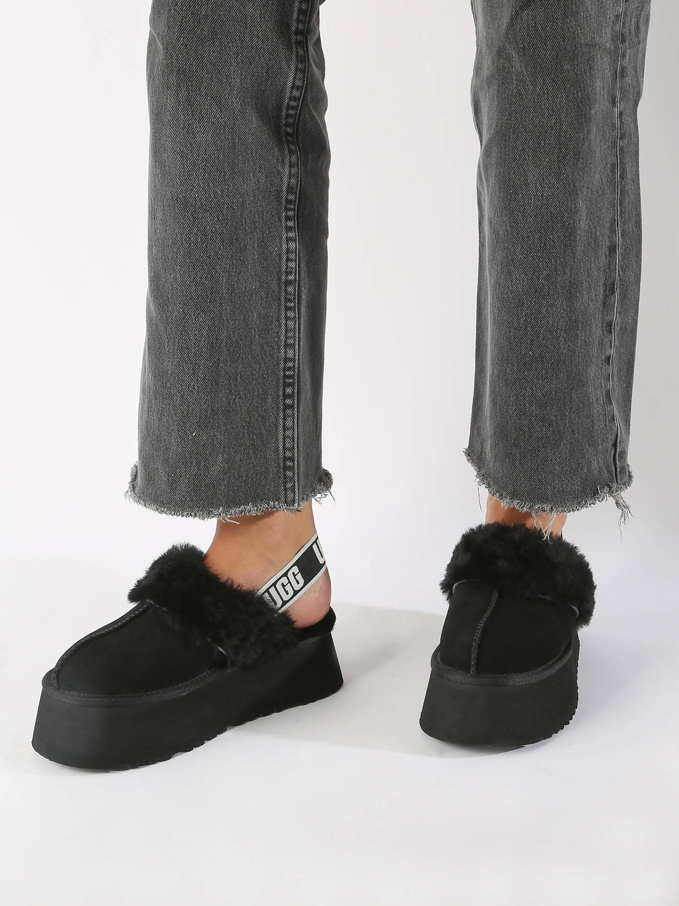 Mules avec brides en cuir UGG avec composition en cuir. Ce modèle chausse normalement. Il a une tige en cuir, une doublure en cuir, une semelle intérieure en cuir et une semelle extérieure en caoutchouc. Les chaussures sont fermées par des élastiques pour un ajustement confortable. Son style est à la mode, parfait pour une tenue fashion.