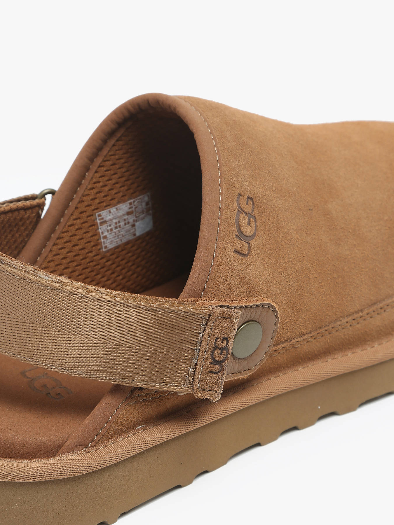 Le sabot Goldencoast d'UGG, confectionné en daim velouté, est l'incarnation du confort et de la polyvalence. Son design unique permet de le porter de deux façons grâce à une lanière pivotante : soit avec la lanière sur le talon, soit avec la lanière sur le dessus, offrant une grande facilité d'enfilage et de retrait. Sa semelle extérieure ultralégère en EVA issu de la canne à sucre garantit un amorti optimal et un excellent maintien, pour un confort tout au long de la journée. La doublure textile en fibres polyester recyclées et l'assise plantaire en mousse apportent une touche écologique tout en assurant un bien-être maximum. Ce sabot est une véritable référence en matière de confort moderne et de design innovant.