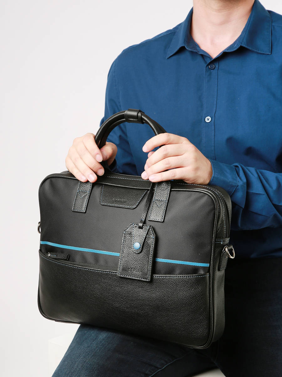 Porte document en nylon garni cuir de vachette. Dôté d'un compartiment, et d'une capacité pouvant accueillir un PC 14 pouces, ce modèle de la ligne Light Sport présente des codes urbains et modernes. Orné d'un détail coloré très graphique, c'est une ligne élégante et discrète à porter tous les jours.