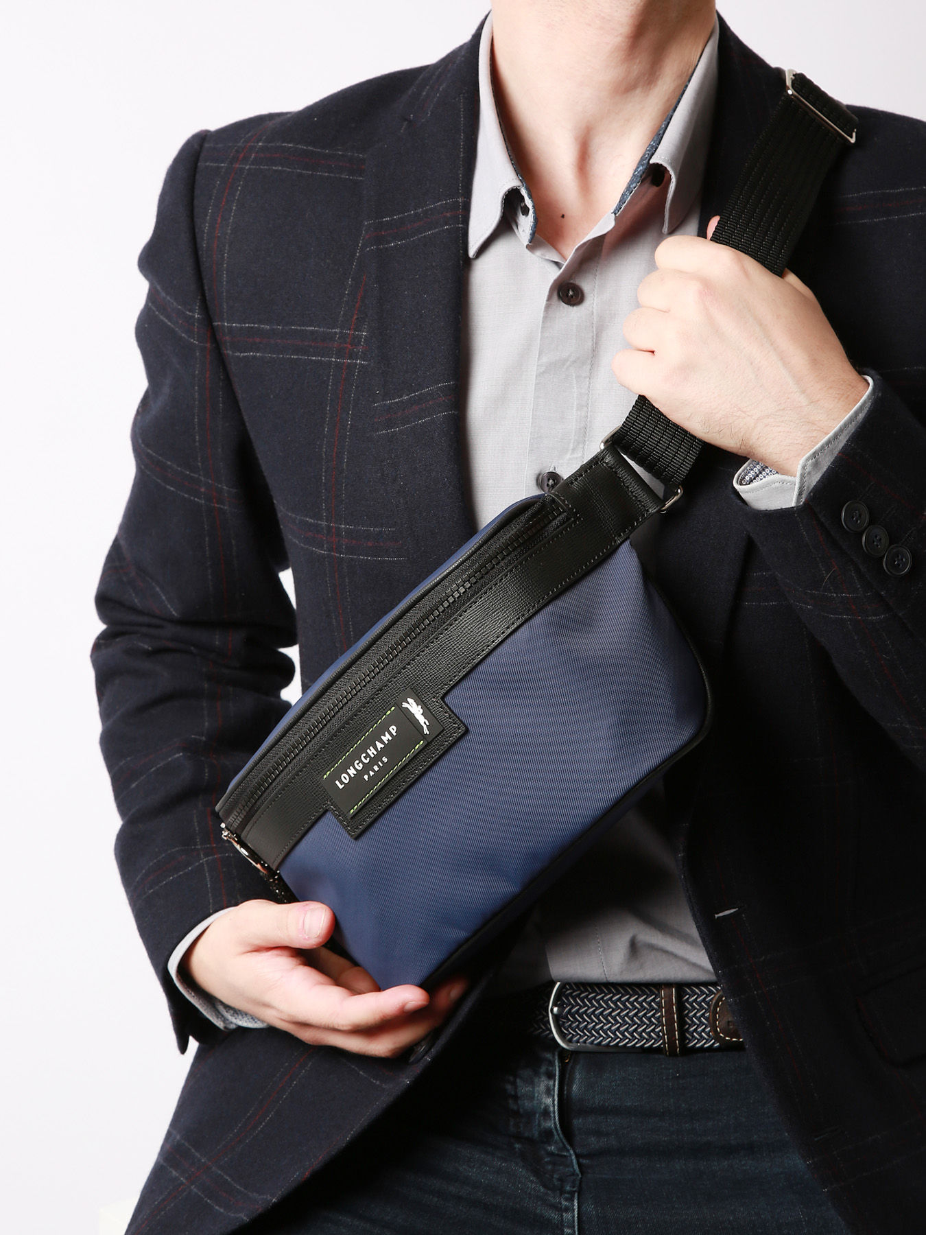 Découvrez la nouvelle collection éco-responsable de la marque Longchamp : « Green District », pour un homme urbain toujours en mouvement, à la recherche d’un article de maroquinerie actuel, élégant et respectueux des ressources naturelles. Le fil rouge : l’utilisation de nylon recyclé ECONYL®. La toile unie met en avant les détails de la ligne, comme l'étiquette Longchamp surpiquée d'un fil vert, couleur signature de la marque. Ce sac banane au format généreux peut accueillir tout ce dont vous avez besoin dans la journée. Sa bandoulière réglable permet de le porter de différentes manières, à la ceinture pour un look plus sport et décontracté, ou bien en travers pour une allure plus mode.