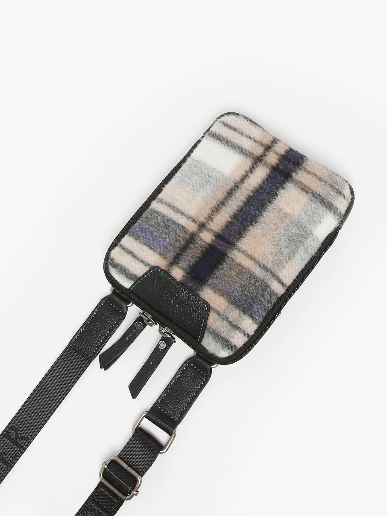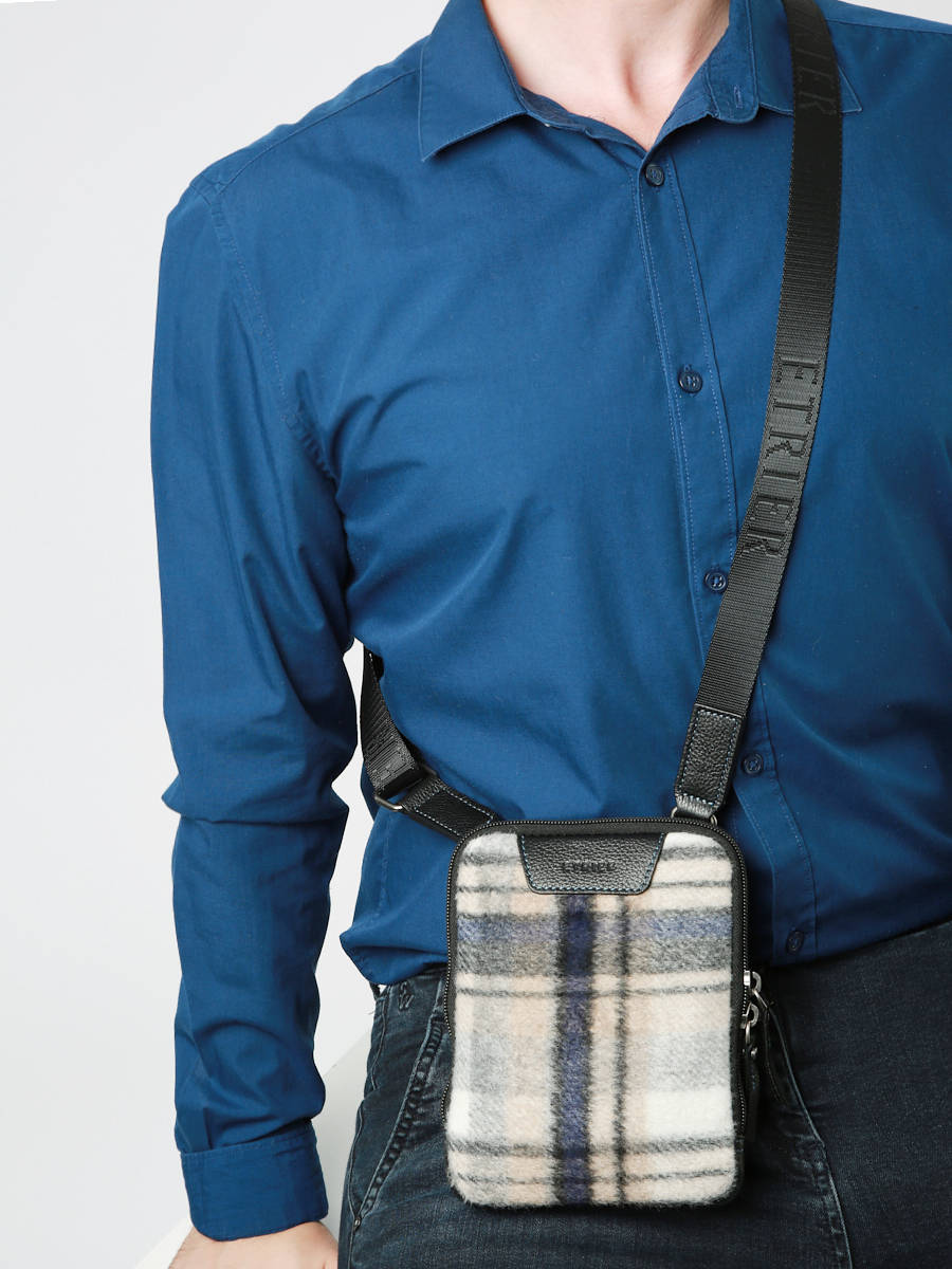 Petite sacoche en flanelle et cuir, fonctionnelle et tendance. Ornée d’un imprimé Tartan réalisé dans une flanelle aux allures urbaines, elle est également garnie de cuir. Fermée par un zip, elle possède une bandoulière réglable en nylon brodée de notre logo Etrier ton sur ton.