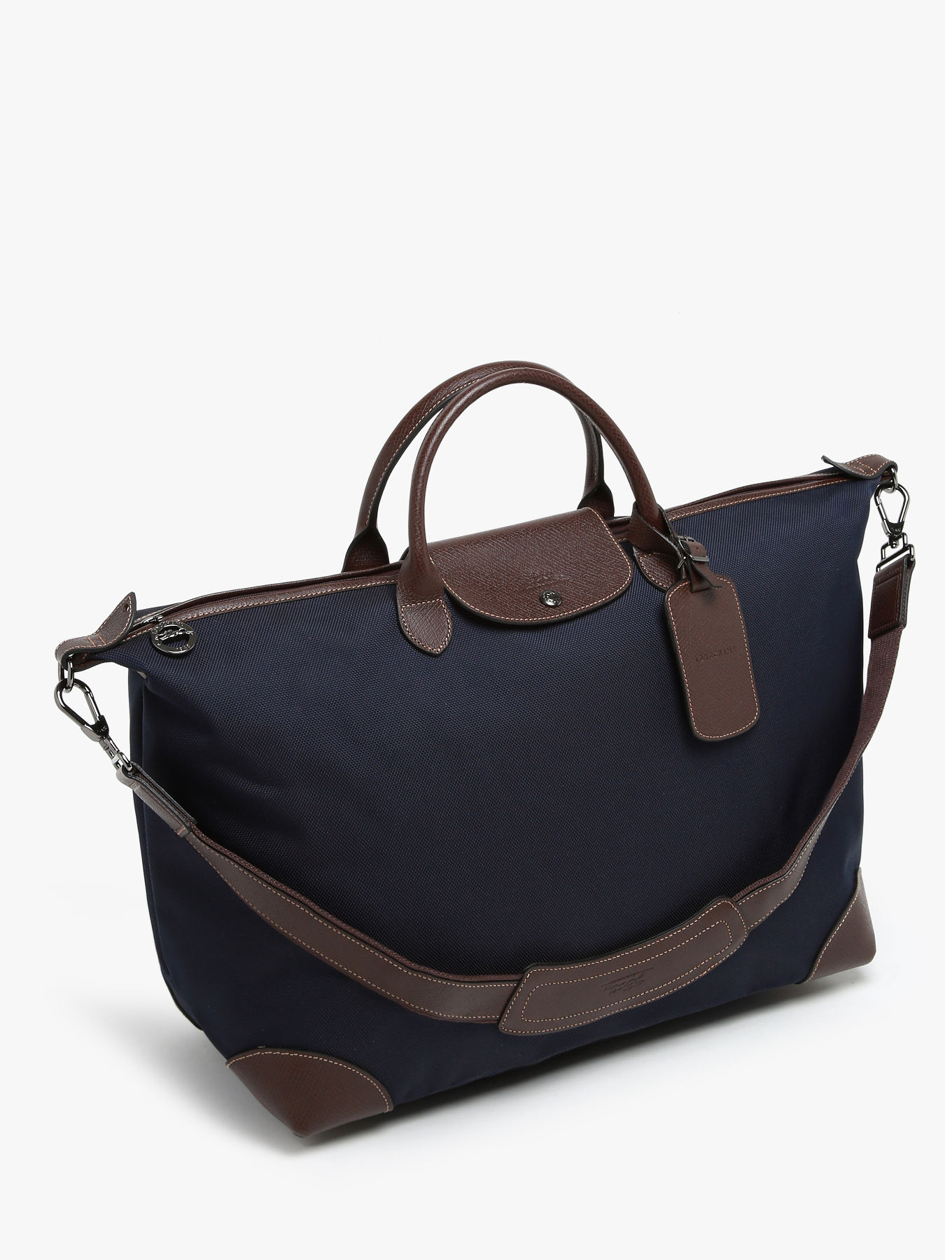 Le sac de voyage Boxford de Longchamp, composé de polyester garni de cuir, incarne l'élégance et la fonctionnalité pour les hommes modernes et les voyageurs avertis. Idéal comme bagage cabine, il offre la flexibilité d'être porté à la main grâce à ses poignées robustes ou en bandoulière avec une bandoulière amovible ajustable, facilitant ainsi les déplacements lors des courts séjours ou des escapades de week-end. La ligne emblématique Boxford de Longchamp se distingue par son style discret et distinctif. Les sacs et les bagages de cette collection sont ornés d'un marquage rectangulaire Longchamp embossé dans le cuir, complété par des surpiqûres contrastantes qui ajoutent une touche de raffinement à leur design. Fabriquée avec une toile double-ton et une garniture en cuir de Russie, chaque pièce de la collection Boxford présente un effet de relief riche et texturé, soulignant l'artisanat et le savoir-faire caractéristiques de la Maison Longchamp. Que ce soit pour un voyage d'affaires rapide ou une escapade personnelle, le sac de voyage Boxford combine style et fonctionnalité, répondant aux besoins des hommes modernes qui apprécient à la fois l'élégance discrète et la qualité exceptionnelle.