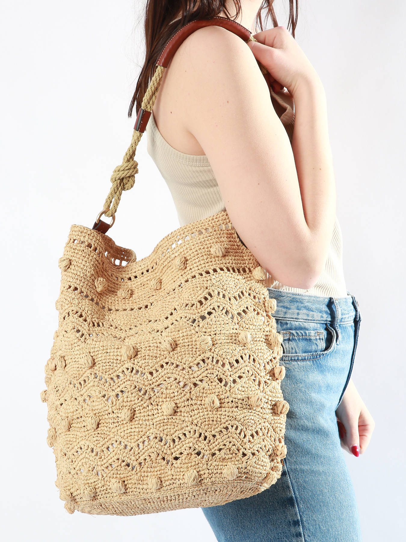 Le sac porté épaule Vanessa Bruno, fabriqué en raphia garni de cuir, est une pièce de mode raffinée et estivale. Avec son design élégant et naturel, il est doté d'une fermeture aimantée pour un accès facile et sécurisé à vos affaires. Sa hauteur d'anse de 25 cm offre un confort optimal lorsqu'il est porté à l'épaule, ajoutant une touche de chic décontracté à votre tenue. À l'intérieur, vous trouverez un compartiment spacieux pour ranger vos essentiels quotidiens en toute organisation.