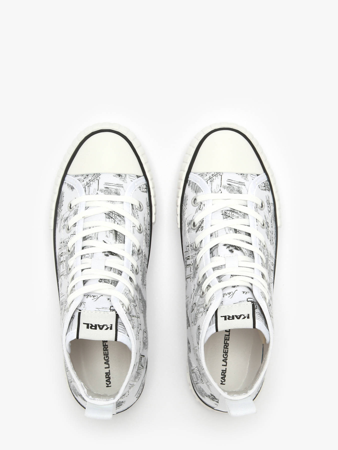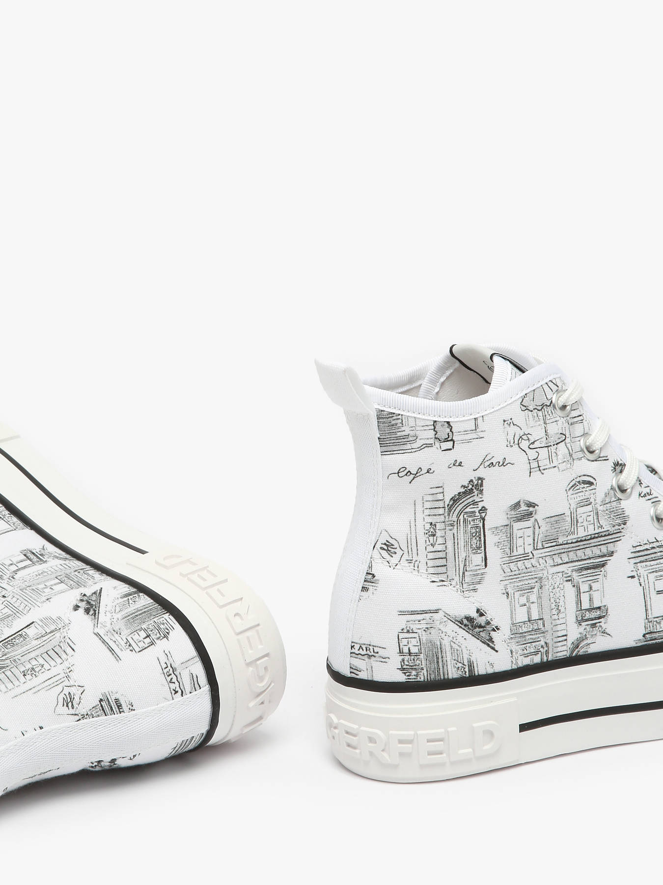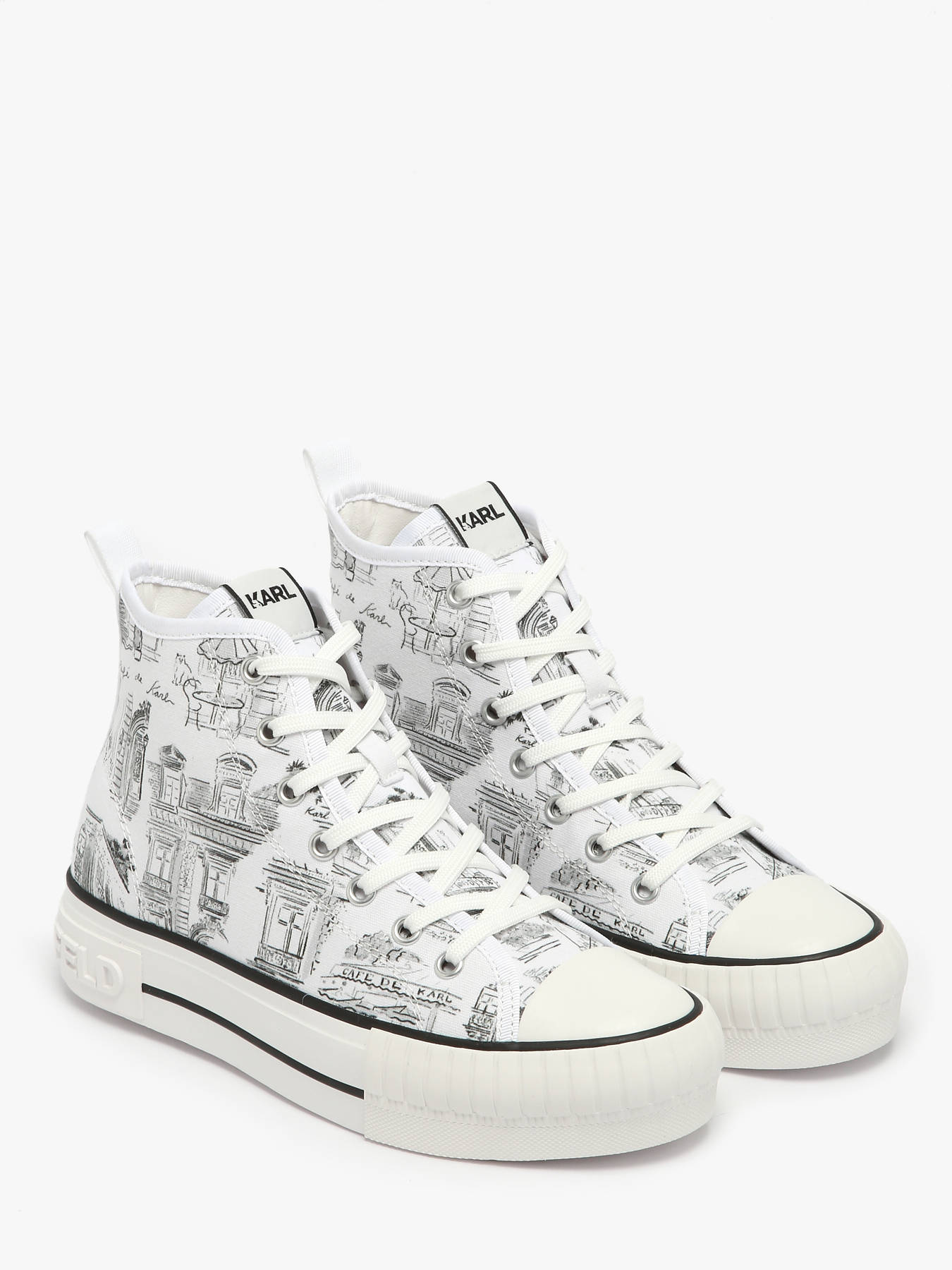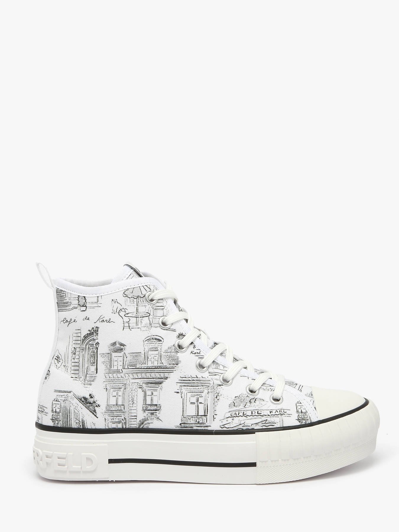Les sneakers KAMPUS MAX Jorge Parra Print Hi de Karl LAGERFELD sont une véritable œuvre d'art, conçues en collaboration avec le célèbre illustrateur espagnol Jorge Parra. Ces baskets hautes se distinguent par une impression unique « Café de Karl », apportant une touche artistique et originale à votre look. Confectionnées en textile, elles sont légères et confortables. La doublure en synthétique et textile, ainsi que la semelle intérieure mixte, offrent un confort exceptionnel tout au long de la journée. La fermeture à lacets permet un ajustement personnalisé, assurant un maintien optimal. Avec leur design audacieux et leur collaboration créative, ces sneakers sont parfaites pour ceux qui recherchent un mélange de mode et d'art dans leur style quotidien. Un modèle incontournable pour les amateurs de mode et de design.