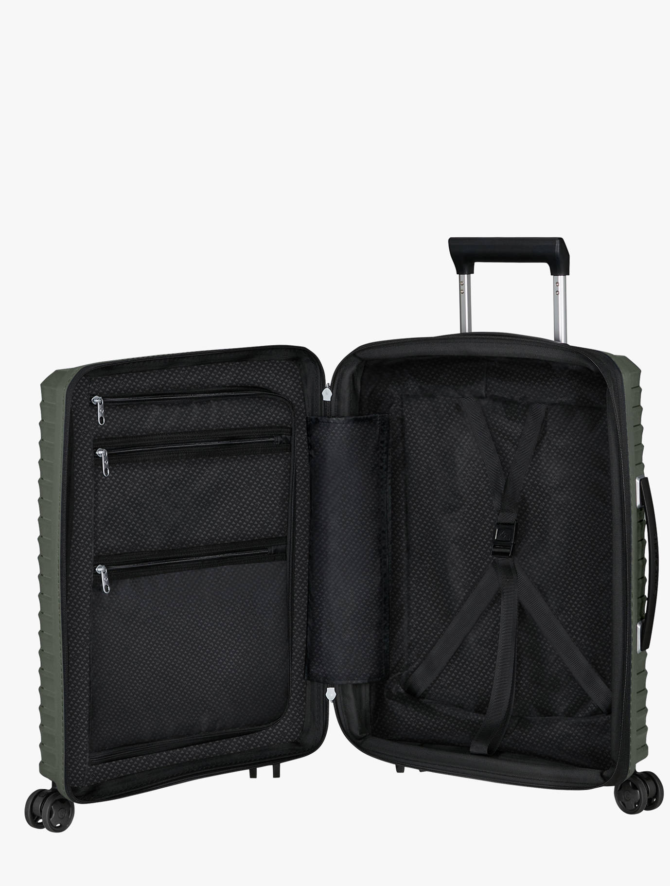 Alliant légèreté, confort et design moderne, la valise cabine Upscape 55 cm de Samsonite est idéale pour les courts séjours et les voyages en avion. Fabriquée en polypropylène résistant, elle pèse seulement 2,2 kg tout en offrant un volume extensible de 39 à 45 L, pour s’adapter à vos besoins. Ses quatre roues à suspension absorbent les chocs et réduisent les bruits de roulement, garantissant une mobilité fluide. Elle est dotée d’un cadenas TSA, d’un système de poignée télescopique multipositions, de deux poignées de portage et d’une étiquette bagage intégrée. À l’intérieur, vous trouverez un compartiment supérieur avec plateau séparateur zippé, un compartiment inférieur avec sangles de maintien, ainsi qu’une doublure amovible et lavable à la main. Pratique, fonctionnelle et élégante, Upscape transforme vos déplacements en véritables moments de confort.
